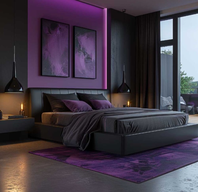 Phòng ngủ màu tím đậm