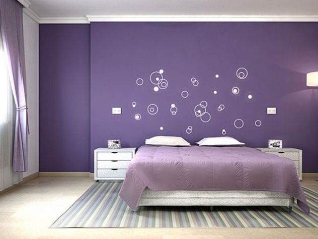 Sơn màu tím cho phòng ngủ và giấy dán tường